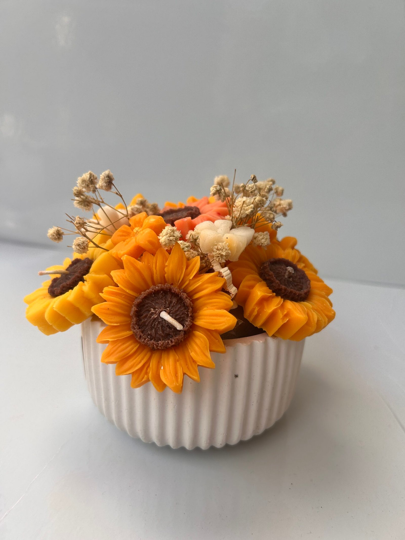 Our Sunflower Bloom Candle Bouquet captures the radiant beauty of golden sunflowers in a handcrafted wax arrangement designed to brighten any space.