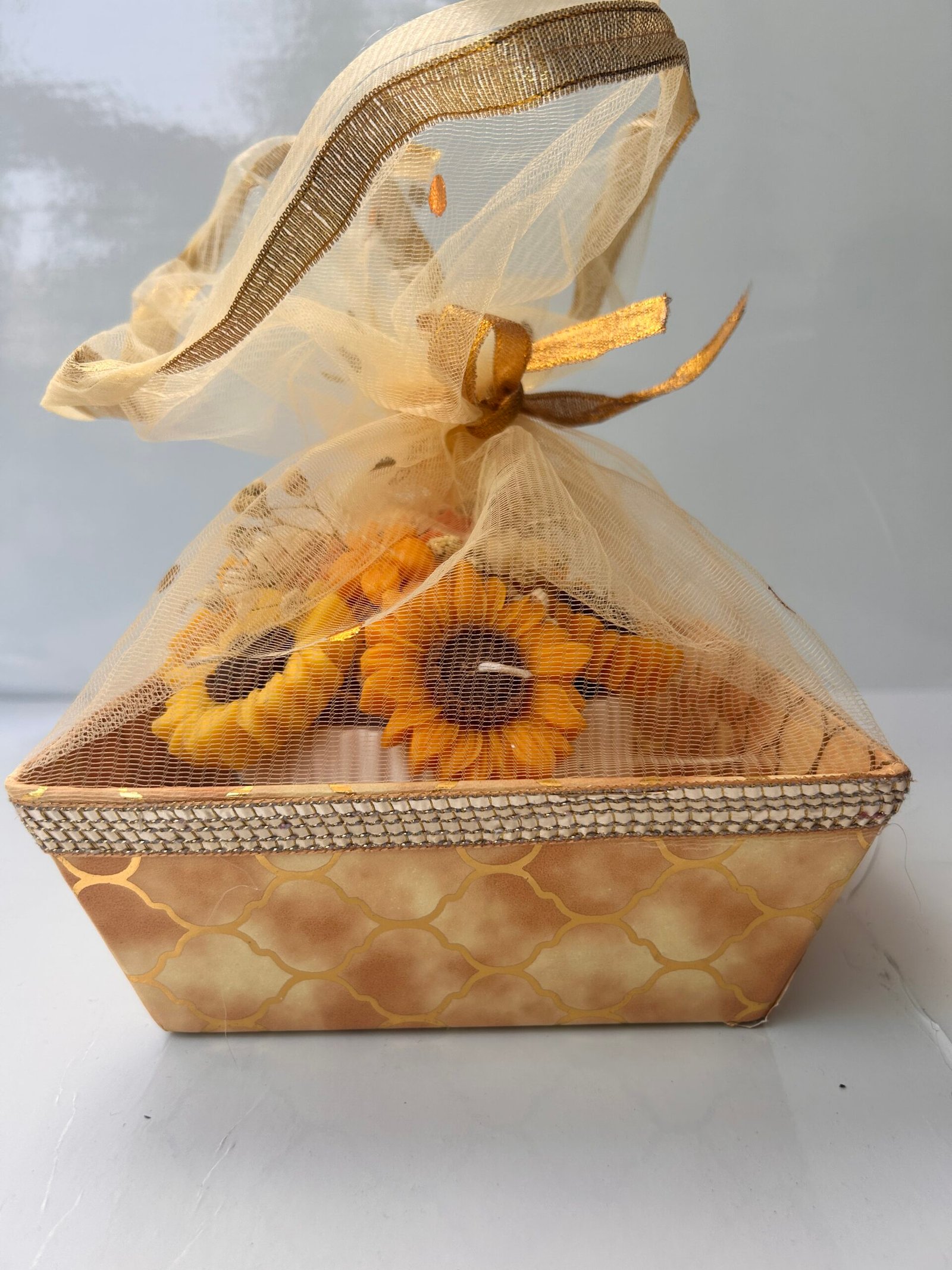Design: Assorted Sunflower Candles with Premium Bouquet Wrapping